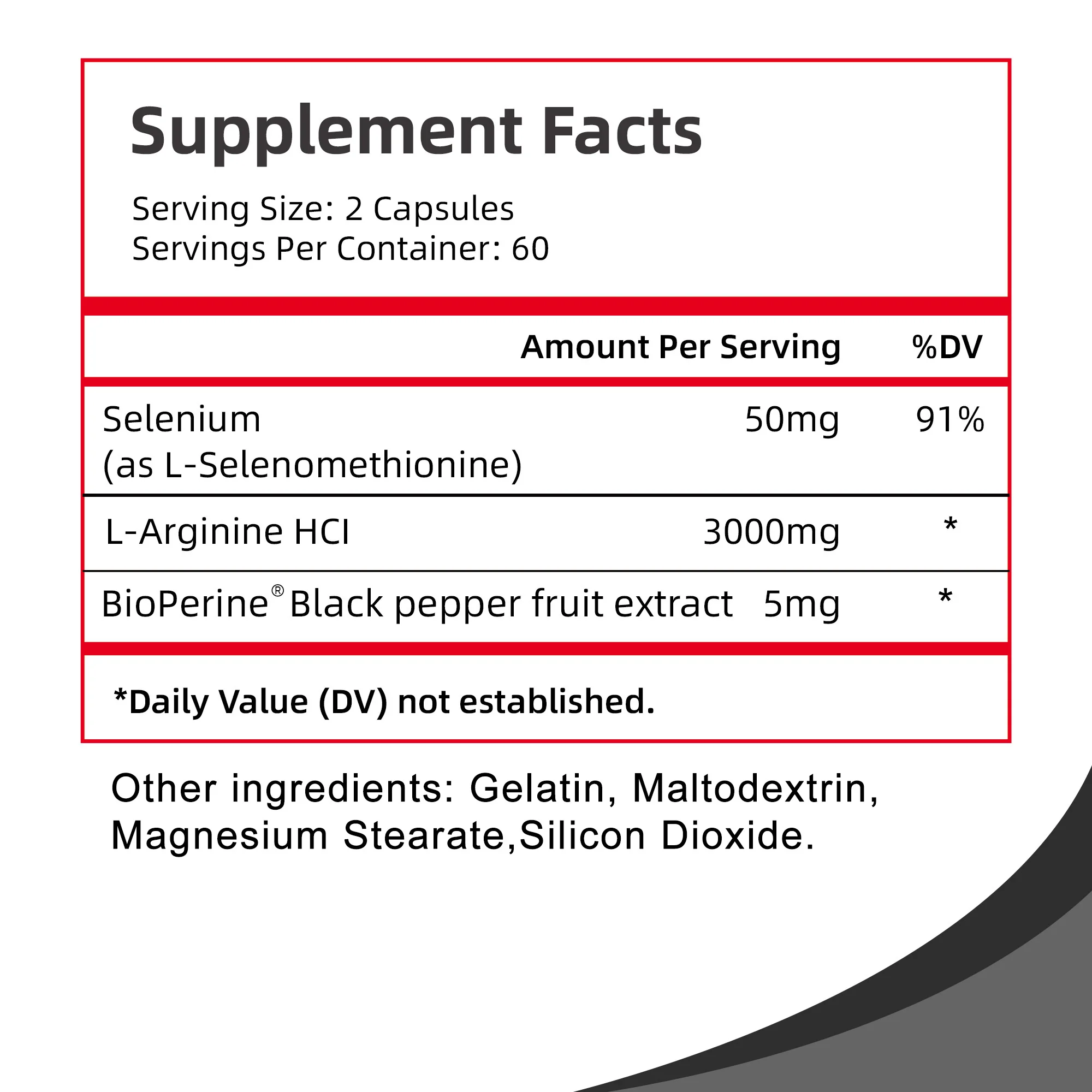Ingredients: L-Arginine, Selenium